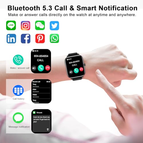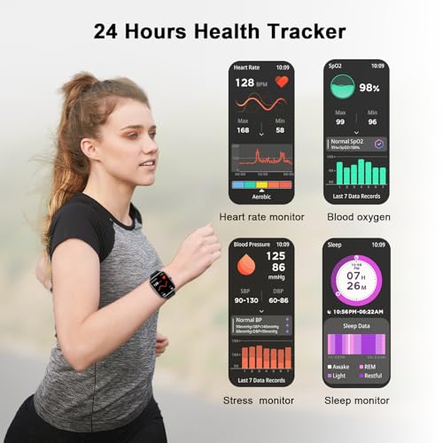 【All-day Health Monitoring】This activity tracker smart watch with receiving/ dial function can detect your blood pressure and heart rate. You can enable 24-hour heart rate detection in the APP. The high-performance motion sensor monitors sleep status (deep sleep, light sleep and wake-up time) and provides comprehensive sleep quality analysis. With this fitness watch for men women, you can have a healthier, more active life.