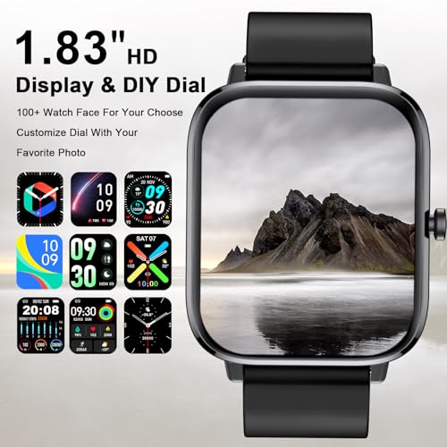 【1.83″ Large Screen & 100+ Watch Faces】This fitness smart watch with receiving dial function has a 1.83-inch high-definition full rounded touch screen. Five levels Brightness options allow you to easily read in the sun or in the dark. We have carefully designed beautiful UI and more than 100 watch faces for you, allowing you to switch watch face styles through the App (Da fit) at any time according to your mood and occasion.
